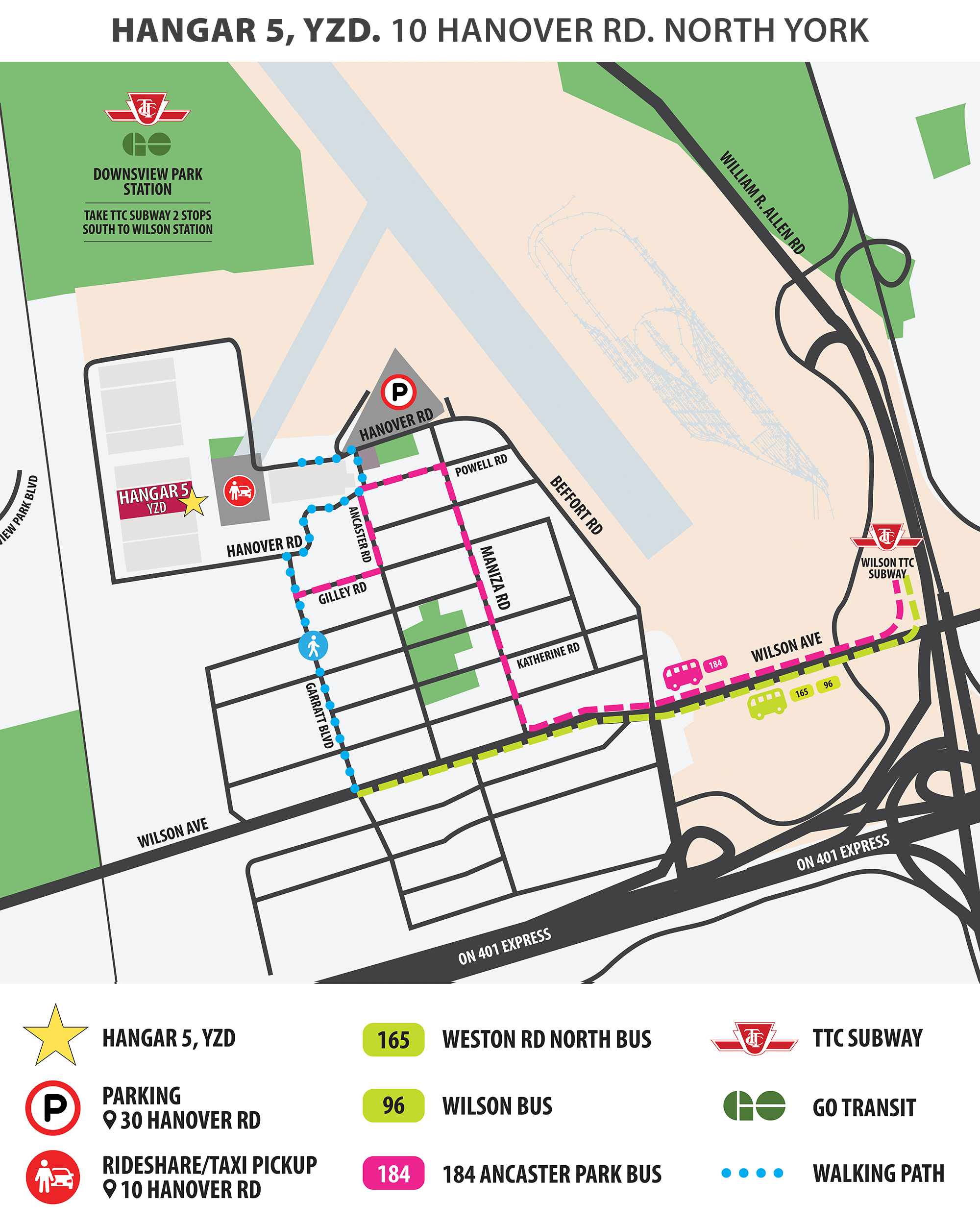 Pick-up / Drop-off for Hangar 5, YZD is located at 10 Hanover Rd.